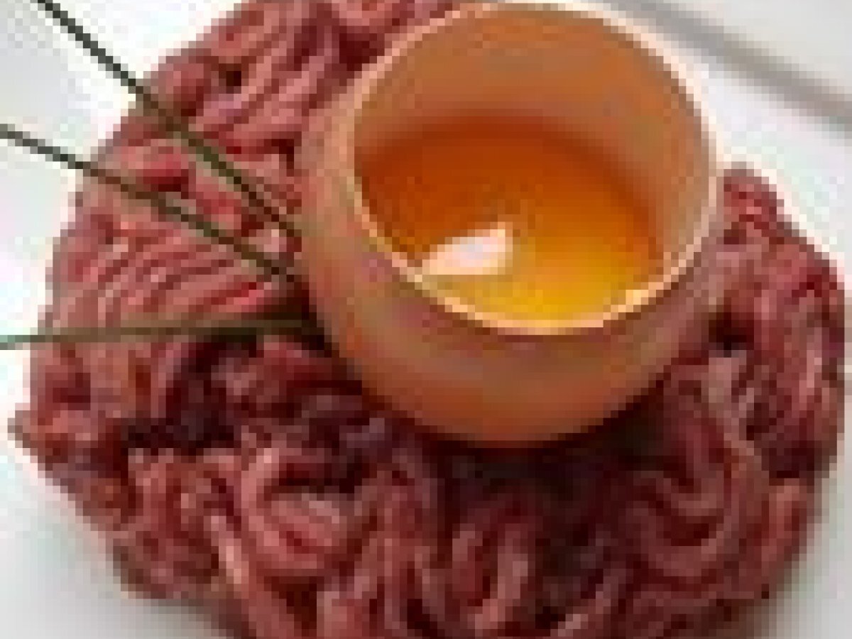 - Hacher la viande et la reformer en steak, faire un petit creux au centre puis placer le jaune d’œuf dans sa coquille.