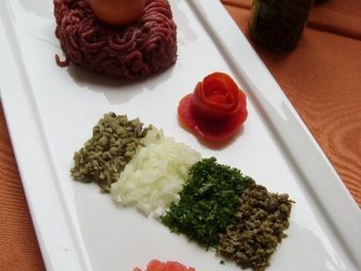 - Présenter le tartare sur assiette, en principe le mélange se fait devant le convive comme suit ...