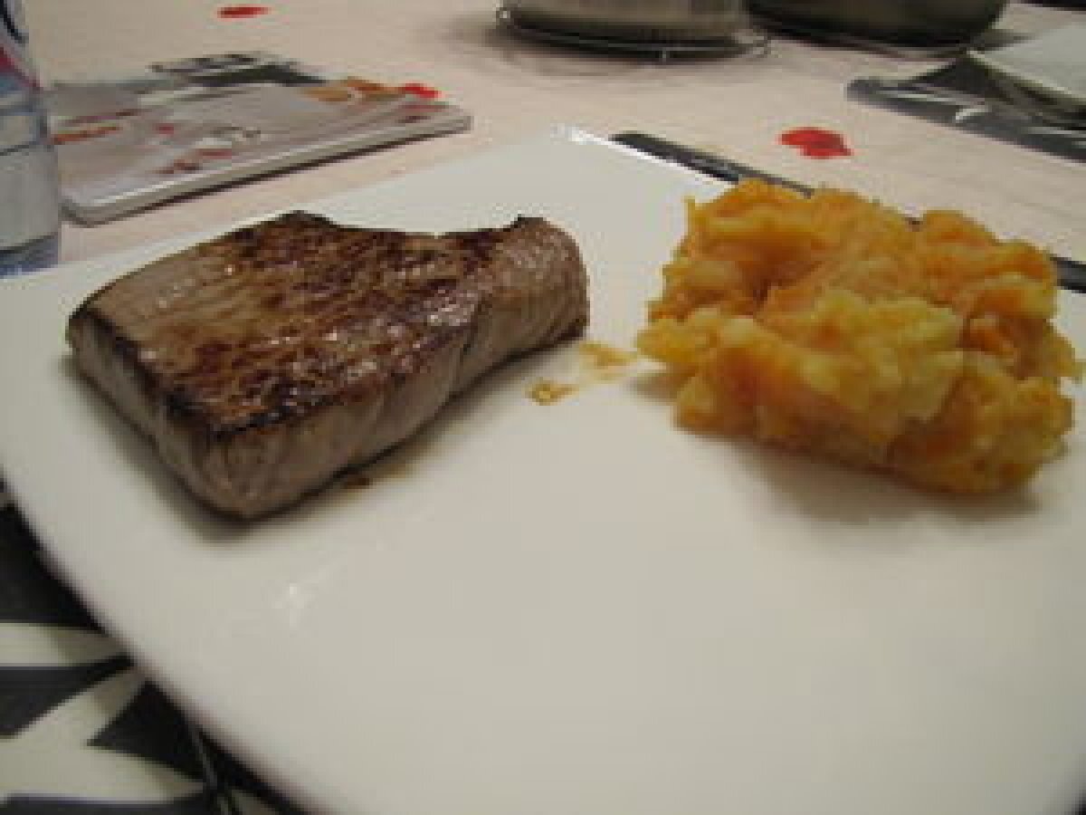 Steak à la purée de carotte au gingembre votez maintenant PrécédentSuivant Platmoyen35 min621 Kcal Envoyer cette recette à un ami Imprimer cette page Poser une question à l'auteur Publier votre photo de cette recette Ingrédients 4 8 pommes de terre farineuse de taille moyenne 1 kg de carotte 1 L de bouillon de légumes 4 steaks à satiété Sel Mélange de poivres 2 cuillères à café de beurre 100 ml de lait écrémé 1 cuillère à café de gingembre râpé