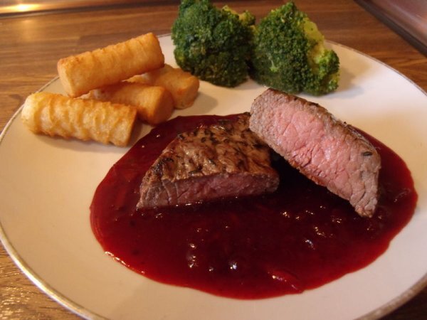 Steak de gibier avec sauce aux airelles et orange
