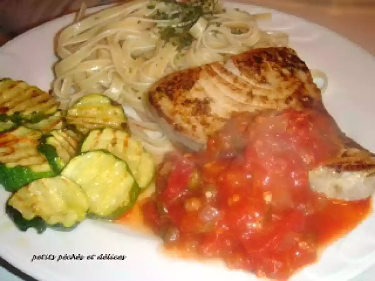 Steaks de thon grillés à la putanesca : un goût bien présent d'anchois et de câpres. La sauce donne un goût différent et est bien bonne.