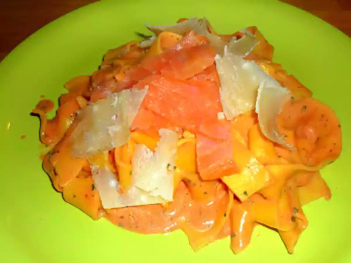 Tagliatelles au saumon fumé, crème tomatée Platfacile20 min612 Kcal Envoyer cette recette à un ami Imprimer cette page Poser une question à l'auteur Publier votre photo de cette recette Ingrédients 4 300 g de tagliatelles 150 g de saumon fumé 20 cl de coulis de tomates 20 cl de crème liquide à 15% piment d'Espelette sel poivre 1 cuillère à soupe de basilic haché quelques copeaux de parmesan Coût estimé: 12.13Euros€ (3.03€/part)