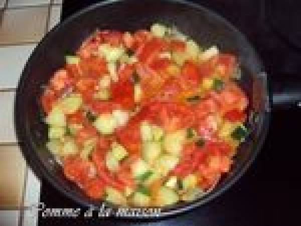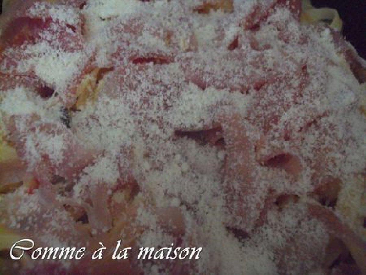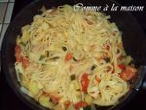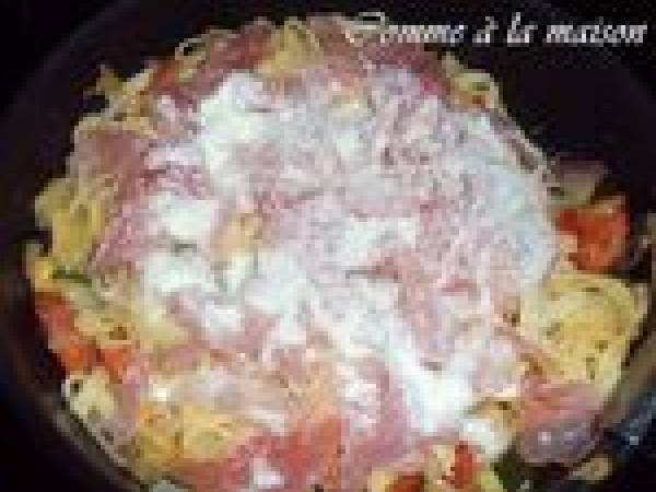 Tagliatelles courgettes, tomates, jambon