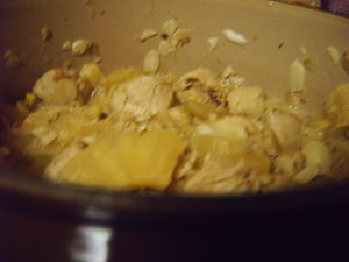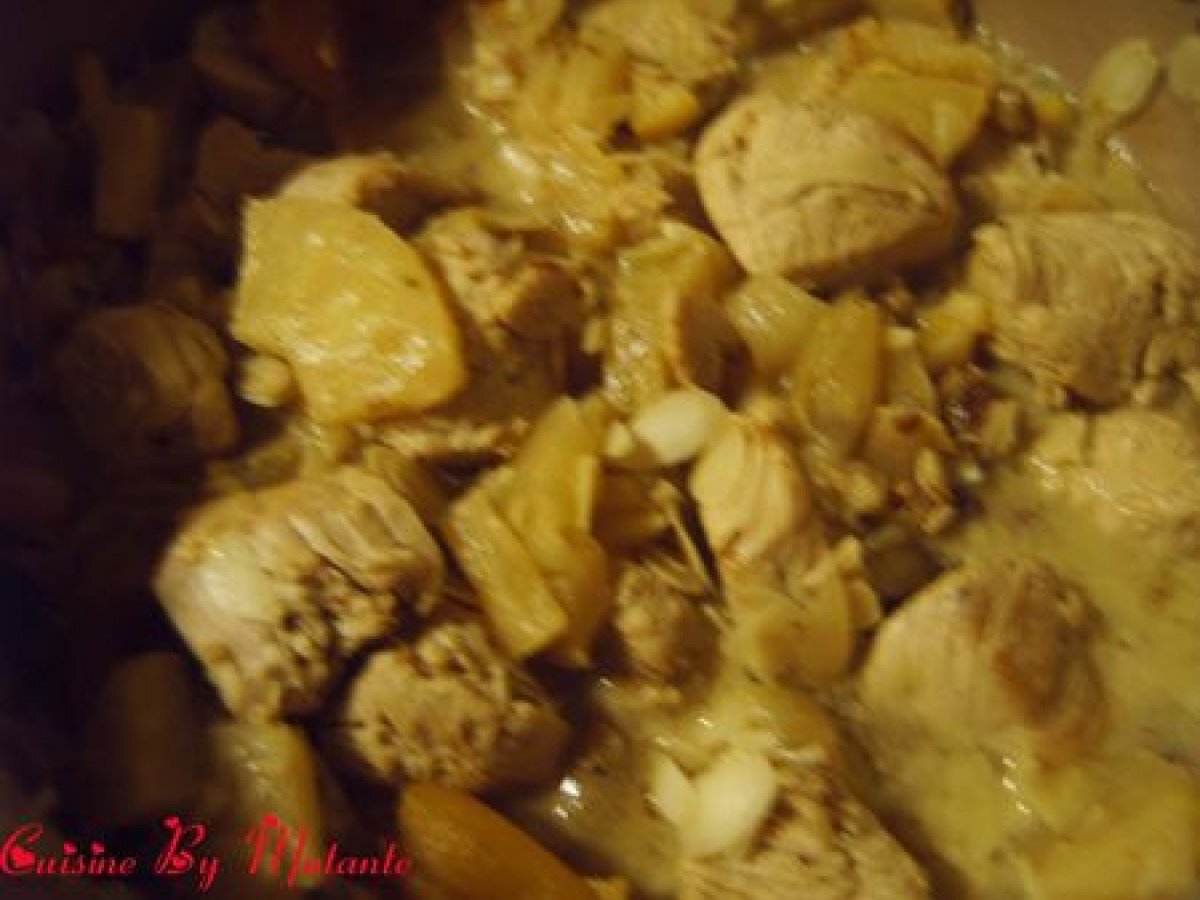 Tajine de dinde à l'ananas votez maintenant PrécédentSuivant Platfacile45 min637 Kcal Envoyer cette recette à un ami Imprimer cette page Poser une question à l'auteur Publier votre photo de cette recette Ingrédients 4 600 g de sauté de dinde (ou escaloppe de dinde coupées en morceaux) 1 boîte d'ananas au sirop (350 g soit environ 10 tranches) 350 g de semoule fine 3 oignons 8 abricots secs 30 g de raisins secs blonds 30 g d'amandes effilées 1/2 citron non traité 4 cuillères à soupe d'huile d'olive 1 cuillère à café de cumin 1 cuillère à café de graines de coriandre 25 cl de bouillon de volaille coriandre ou persil sel et poivre