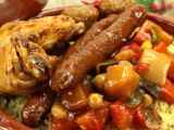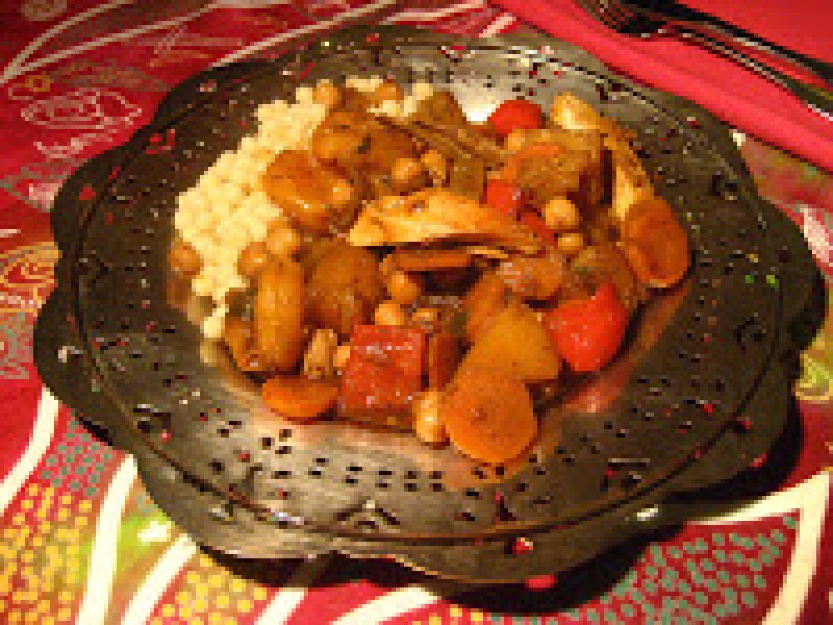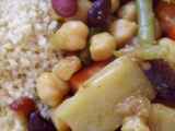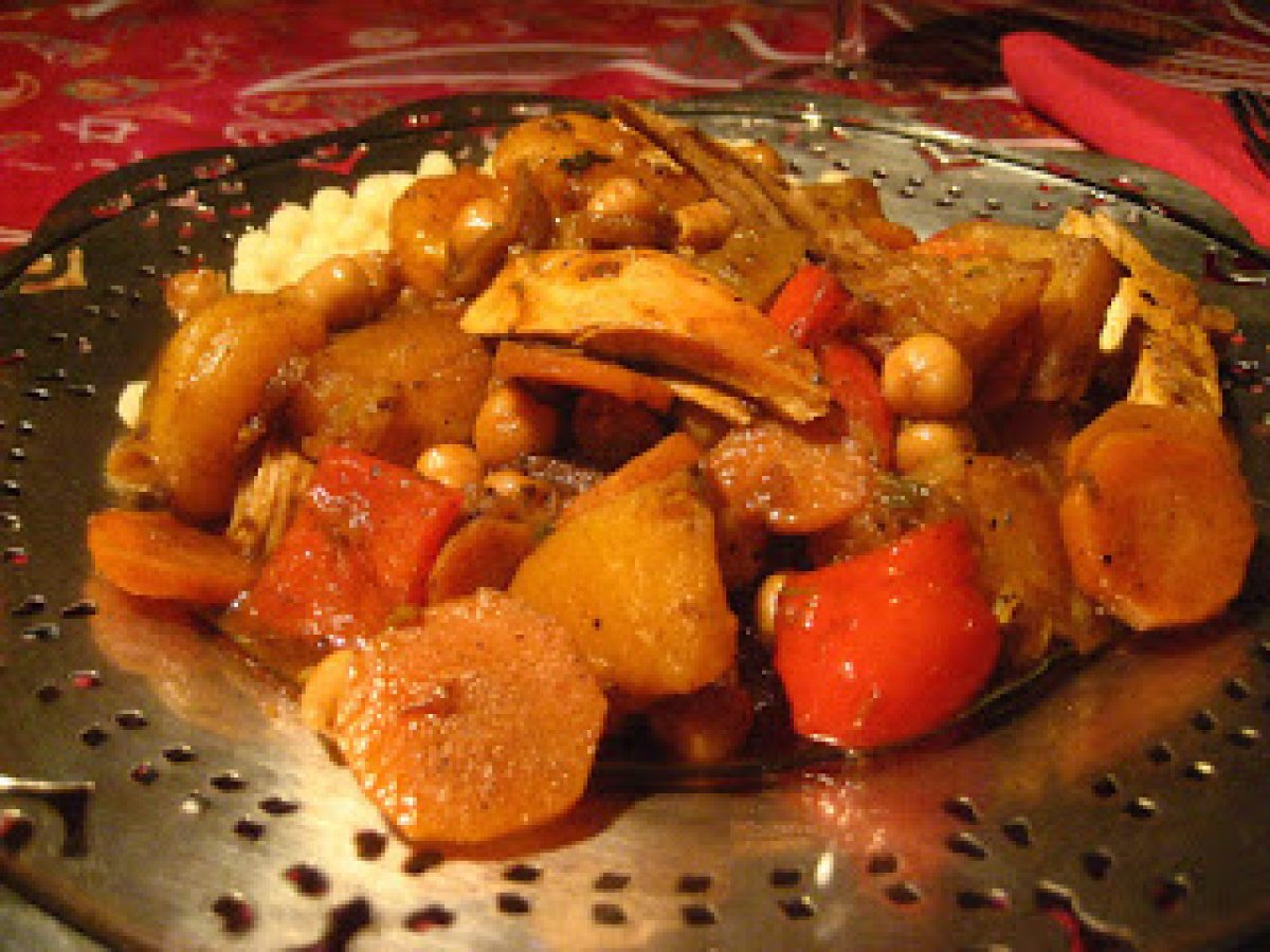 Tajine de légumes et de pois chiches au ras el hanout maison sur couscous de jérusalem PrécédentSuivant Platfacile1 h 15 m Envoyer cette recette à un ami Imprimer cette page Poser une question à l'auteur Publier votre photo de cette recette Ingrédients 6 Tajine de légumes et de pois chiches: 6 cuillères à soupe d'huile d'olive 1 oignon rouge coupé en fins demis-cercles 4 gousses d'ail finement hachées ras et hanout 3 carottes coupées en quartiers dans le sens de la longueur 3 poivrons rouges coupés en lamelles de 2,5 cm 350 g de potiron pelé, épépiné et coupé en gros morceaux 350 g de patates douces coupées en gros morceau 350 g de courges pelées, épépinées et coupées en morceaux de 7 cm 2 cuillères à soupe de purée de tomates 225 g de pois chiches cuits et égouttés environ 28 abricots secs de Hunza 1 grosse pincée de safran 1 grosse poignée de feuilles de coriandre hachées sel Ras el hanout: 1 morceau de bâton de cannelle de 2,5 cm 1 cuillère à thé de graines de cumin 1 cuillère à thé de graines de coriandre 1/2 cuillère à thé de clous de girofle 1/2 cuillère à thé de graines de cardamome 1 grosse pincée de safran 1 cuillère à thé de gingembre moulu 1/2 cuillère à thé de poivre de Cayenne 1/3 cuillère à thé de noix de muscade râpée 1 cuillère à thé de thym déshydraté 1 cuillère à thé de pétales de rose ou 1 cuillère à thé d'eau de rose
