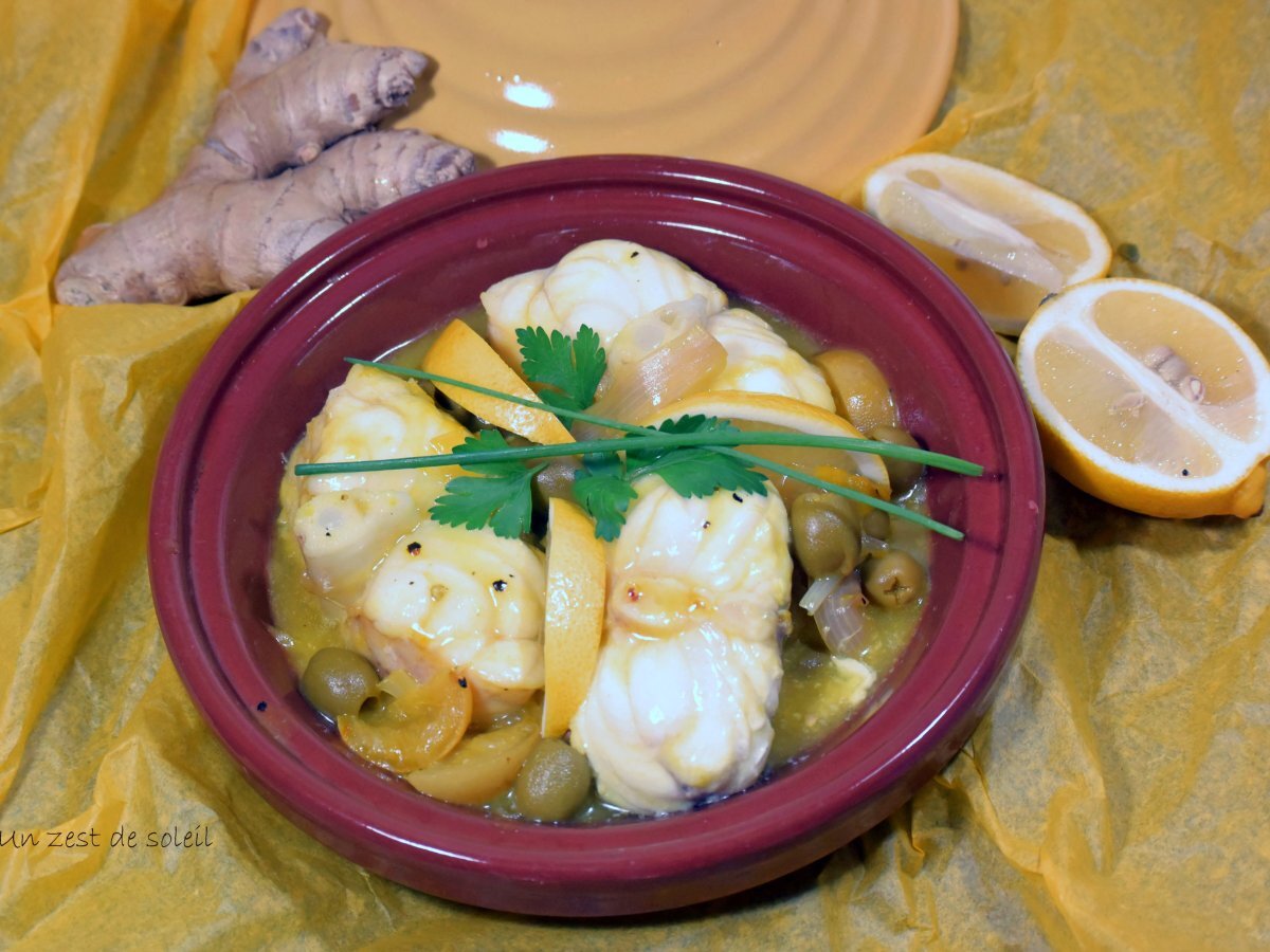 Tajine de lotte avec du citron confit et des olives .