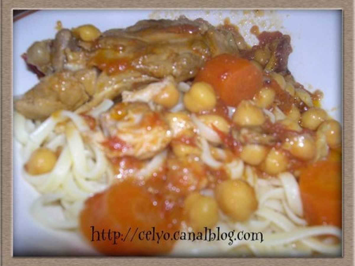 Tajine de poulet aux pois chiches PrécédentSuivant Platfacile1 h 15 m Envoyer cette recette à un ami Imprimer cette page Poser une question à l'auteur Publier votre photo de cette recette Une recette qui rend les papilles en émoi. Ingrédients 6 * 6 morceaux de poulets * 3 gousses d'ail * 400 g de pois chiches (boîte) * 4 tomates * 2 carottes * 2 petits oignons * 400 ml de bouillon de poule * 2 cuillères à soupe d'huile d'olive * 1 bâton de cannelle * 1 sachet de spigol * 2 feuilles de Laurier * Sel / Poivre