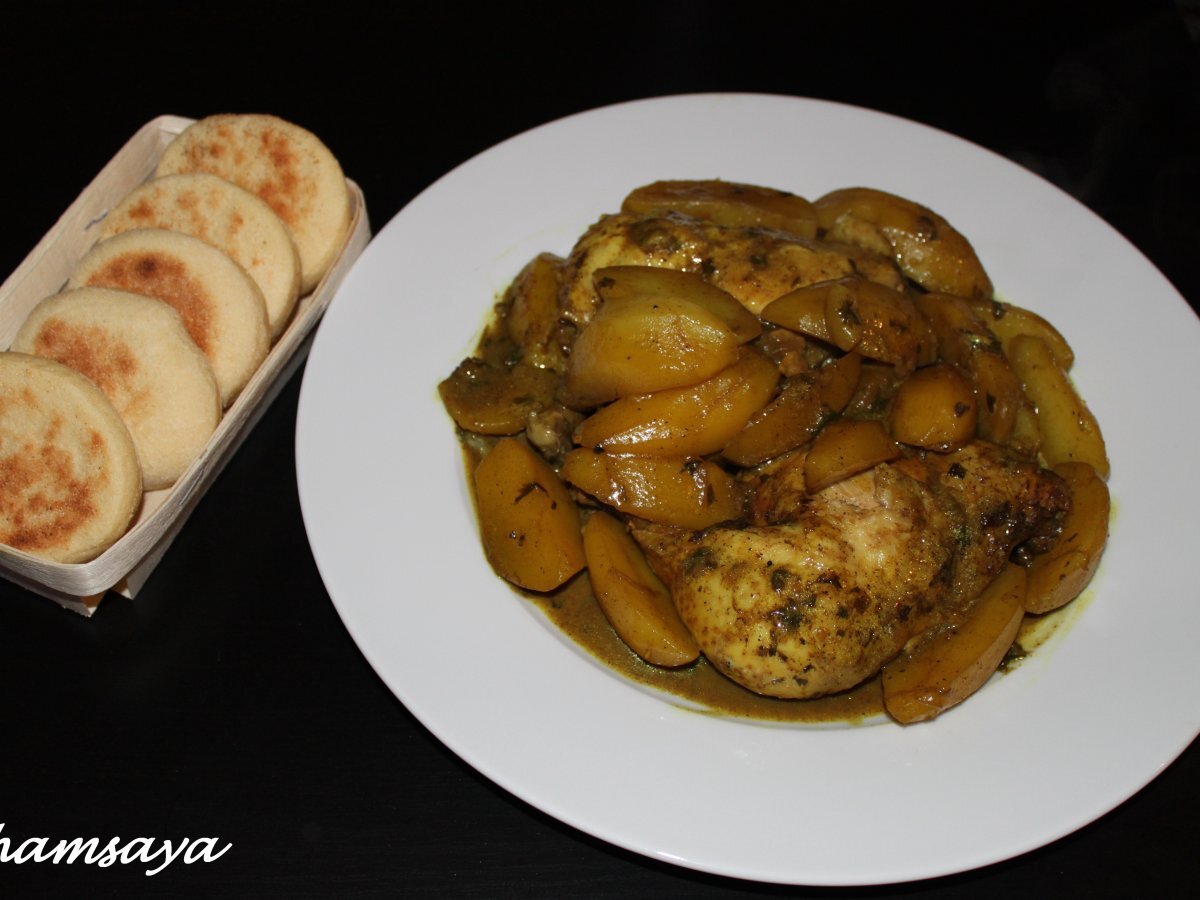 Tajine de poulet aux pommes de terre PrécédentSuivant Platmoyen1 heure462 Kcal Envoyer cette recette à un ami Imprimer cette page Poser une question à l'auteur Publier votre photo de cette recette Ingrédients 3 2 cuisses de poulet 500 g de pommes de terre 2 oignons 2 gousses d'ail 1 petit bouquet de coriandre et persil 2 cas d'huile d'olive 1 cc sel 1 cc poivre 1 cc gingembre 1 peu de noix de muscade 1 cc curcuma Coût estimé: 3.8Euros€ (1.27€/part)