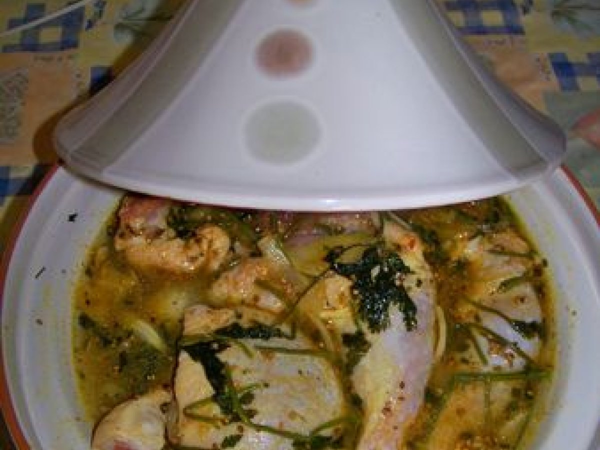 Tajine de poulet courgettes et carottes Platfacile1 h 25 m584 Kcal Envoyer cette recette à un ami Imprimer cette page Poser une question à l'auteur Publier votre photo de cette recette Ingrédients 4 4 cuisses de poulet 1 oignon 2 gousses d'ail de la coriandre fraîche 1 cuillère à café de safran 1 cuillère à café" de gingembre en poudre 1 cuillère à café de cannelle 1 cuillère à café de curcuma 1 cuillère à café de piment doux sel poivre 6 cuillères à soupe d'huile d'olive 2 carottes 3 courgettes 300 ml de bouillon de volaille semoule Coût estimé: 8.36Euros€ (2.09€/part)