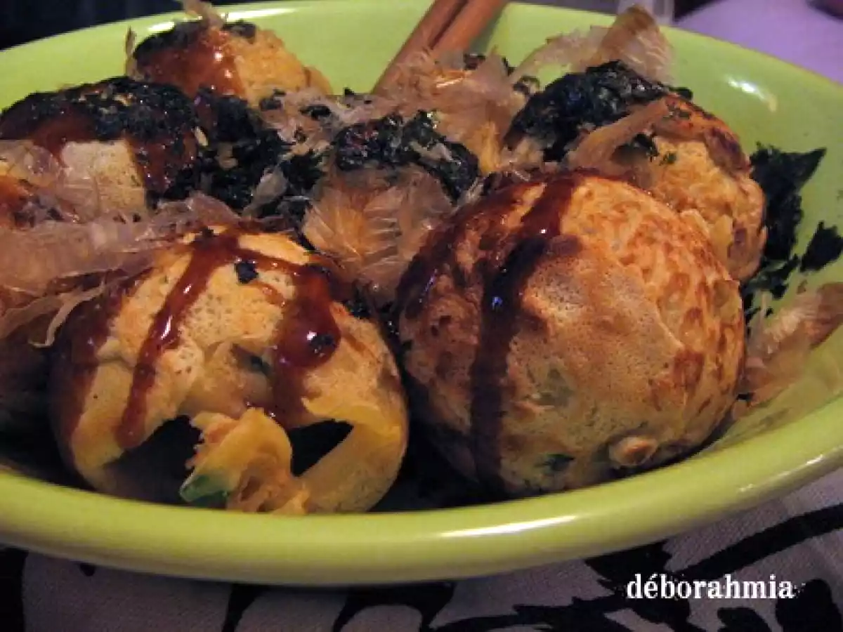 Recouvrez de sauce, de nori et de katsuobushi et servez bien chaud!
