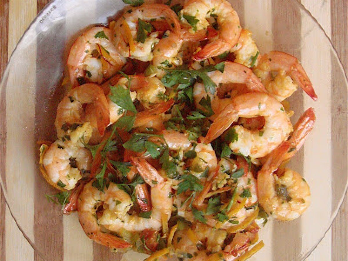 Tapas 7 : gambon con naranja votez maintenant Platfacile10 min639 Kcal Envoyer cette recette à un ami Imprimer cette page Poser une question à l'auteur Publier votre photo de cette recette Ingrédients 1 500 g de gambas décortiquées un zeste d'orange, le jus d'une demi orange 1/4 de poivron vert coupé en petits cubes 1 gousse d'ail haché 1 cuillerée d'huile d'olive 20 g de persil haché Poivre du mouli