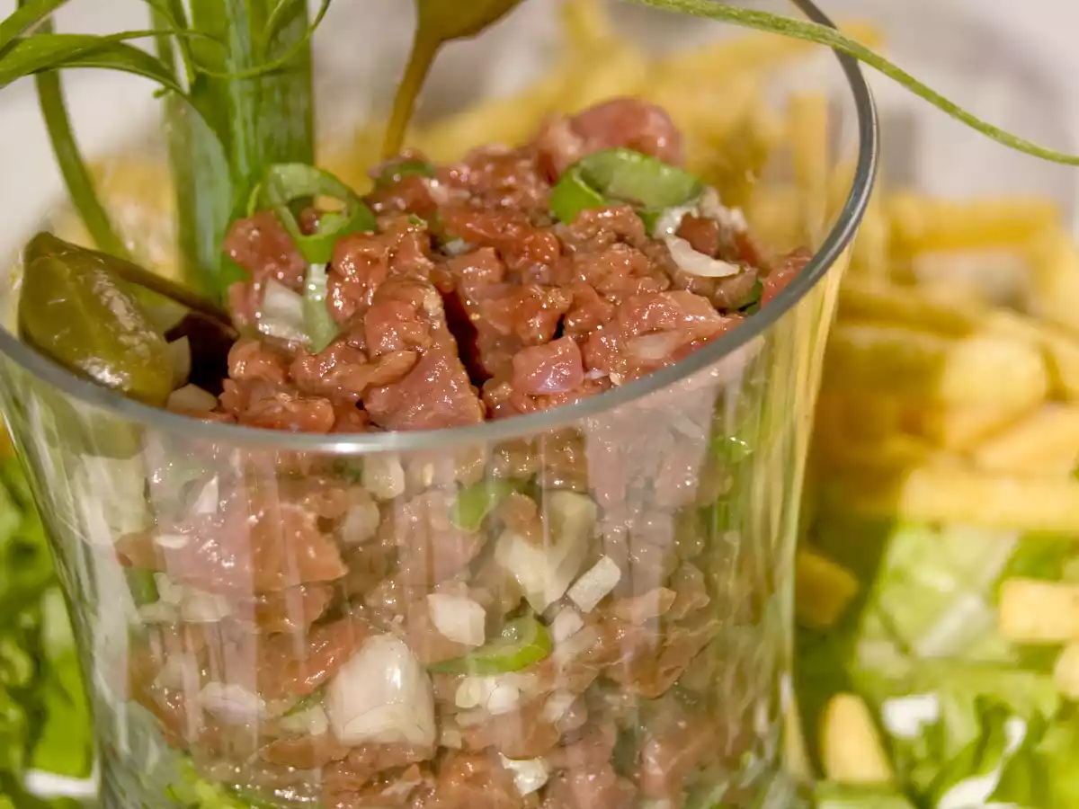 Tartare de magret de canard. Platmoyen20 min Envoyer cette recette à un ami Imprimer cette page Poser une question à l'auteur Publier votre photo de cette recette Ingrédients 1 1 magret de canard 2 c à soupe dhuile dolive 1 c à soupe dhuile dargan ou à défaut de noisettes 1 échalote émincée 1 c à soupe de sauce anglaise 1 oignon vert découpé en lamelles 1 c à café de poivre vert sel et poivre
