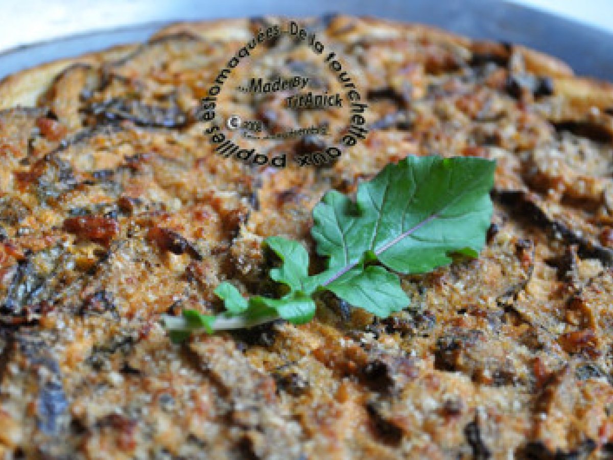 Tarte à l'aubergine, roquette, tomates, pignons, faisselle et parmesan votez maintenant Platfacile47 min Envoyer cette recette à un ami Imprimer cette page Poser une question à l'auteur Publier votre photo de cette recette Ingrédients 4 1 pâte feuilletée ou brisée 2 petites aubergines 100 à 200 ml de coulis ou sauce tomates 1 petit oignon 4 gousses d'ail 1 belle grosse poignée de roquette (sauvage et/ou cultivée) 100 à 125 g de fromage en faisselle 50 g de parmesan 50 à 100 ml de crème 2 cuillères à soupe de chapelure 1 belle branche de sarriette Huile d'olive Sel poivre