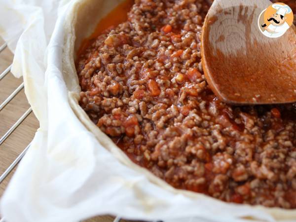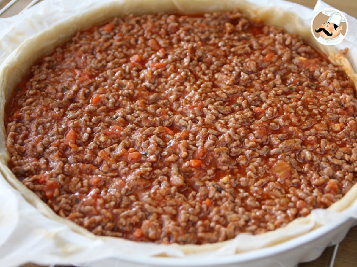Tarte à la viande hachée et sauce tomate