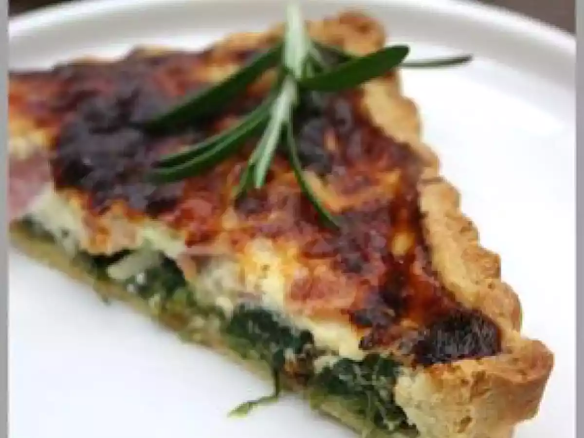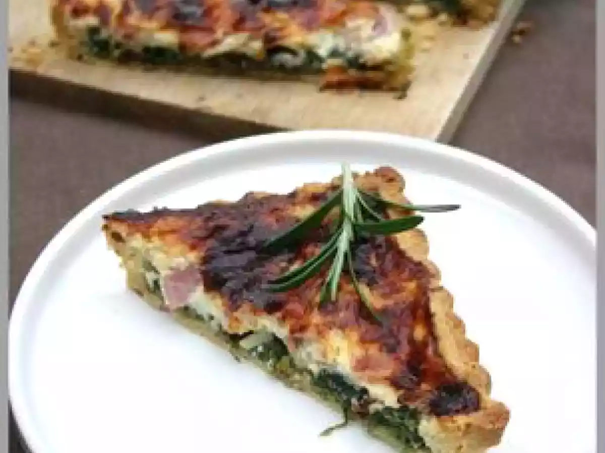 Tarte au jambon et aux épinards PrécédentSuivant Platfacile35 min565 Kcal Envoyer cette recette à un ami Imprimer cette page Poser une question à l'auteur Publier votre photo de cette recette Ingrédients 4 1 pâte brisée 1 oignon 2 cuillères à soupe d'huile d'olive 1 gousse d'ail 200g d'épinards 10 feuilles de romarin 10cl de lait 10cl de crème 50g de parmesan 1 gros oeuf 100g de jambon Sel & poivre Coût estimé: 10.46Euros€ (2.62€/part)