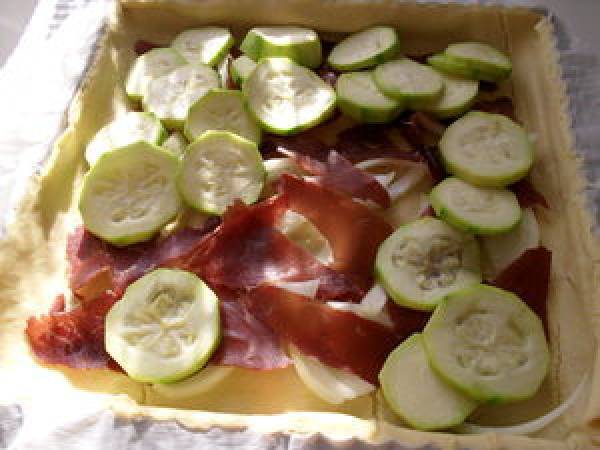 Tarte aux courgettes et viande des grisons votez maintenant Platfacile45 min Envoyer cette recette à un ami Imprimer cette page Poser une question à l'auteur Publier votre photo de cette recette Ingrédients 4 1 pâte brisée 3 courgettes 1/2 oignon émincé 6 tranches de viande des grisons 2 oeufs + 2 jaunes 50 g mascarpone 50 ml lait 50 g comté rapé poivre sel curry