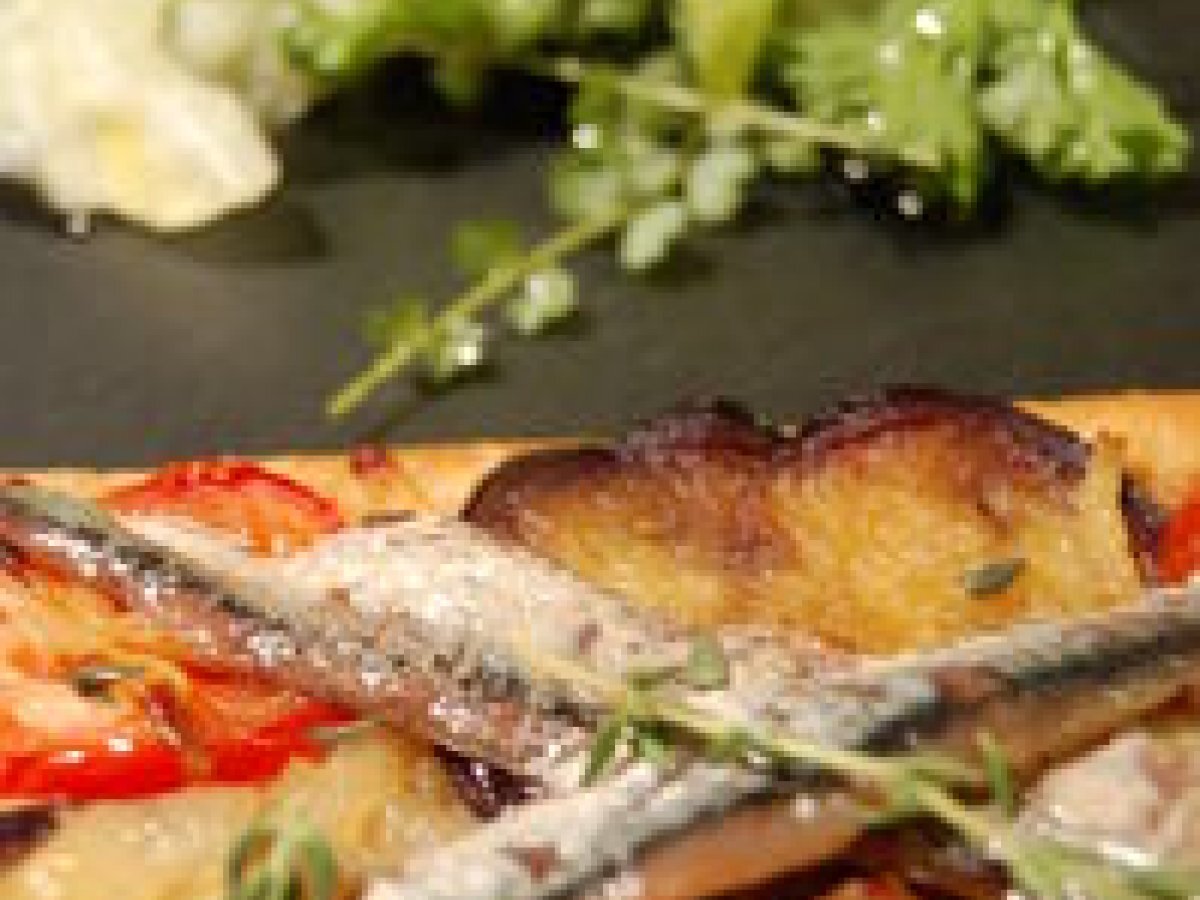 Tarte fine aux aubergines et anchois, salade d'herbes folles votez maintenant Platfacile30 min Envoyer cette recette à un ami Imprimer cette page Poser une question à l'auteur Publier votre photo de cette recette Ingrédients 4 4 carrés de pâte feuilletée 1 belle aubergine 1 oignon 4 tomates cerises 8 anchois à l'huile Sel poivre Huile d'olive Herbes au choix (basilic, persil plat et frisé, ciboulette, menthe, sauge, pimprenelle, oseille)