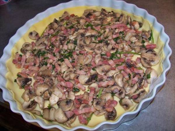 Tarte mimolette et champignons. votez maintenant Platfacile45 min522 Kcal Envoyer cette recette à un ami Imprimer cette page Poser une question à l'auteur Publier votre photo de cette recette Ingrédients 6 1 pâte feuilleté ou brisé 500 g de champignons de paris 200 g de mimolette 250 g de lardons fumé ail persil sel poivre 3 oeufs 1 moyen pot de crème fraîche