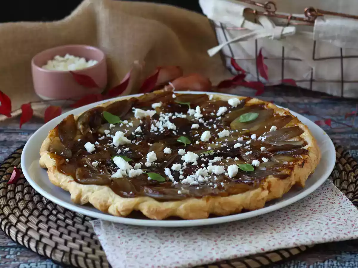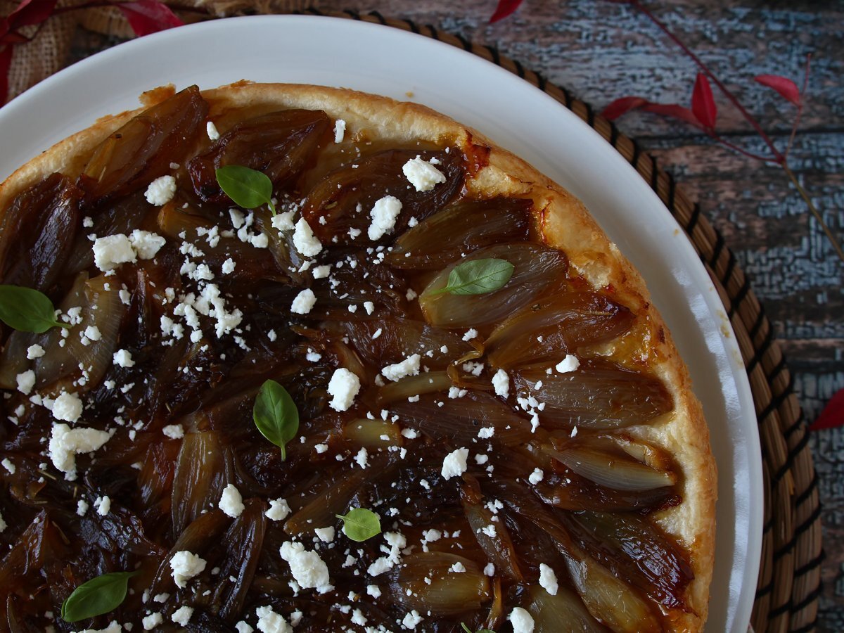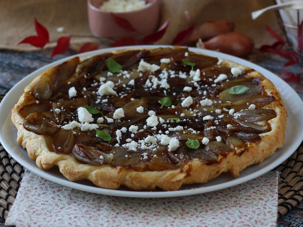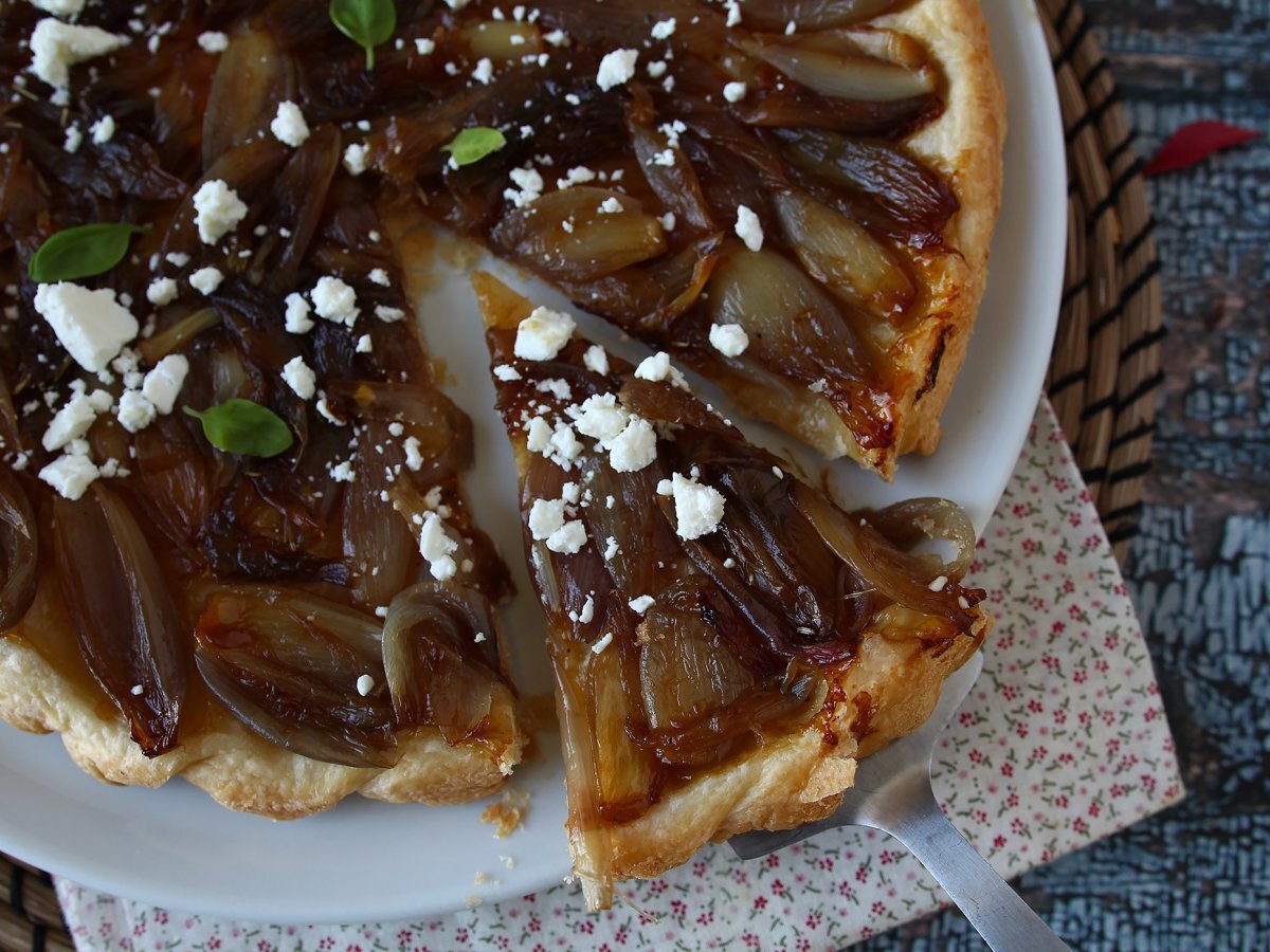 Tarte tatin aux échalotes et feta, la version salée irrésistible!