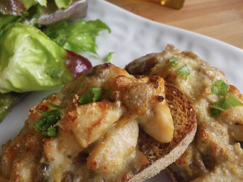 Tartines poulet, champignons et bleu d'auvergne