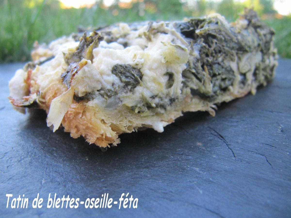 Tatin de blettes oseille feta Platfacile45 min476 Kcal Envoyer cette recette à un ami Imprimer cette page Poser une question à l'auteur Publier votre photo de cette recette Ingrédients 4 Ingrédients pour 4 p: 450 g de verts de blettes 4 feuilles d'oseille 150 g de féta brebis 1 rouleau de pâte brisée (feuilletée pour moi) 2 oeufs 2 cs d'huile d'olive Coût estimé: 5.2Euros€ (1.3€/part)