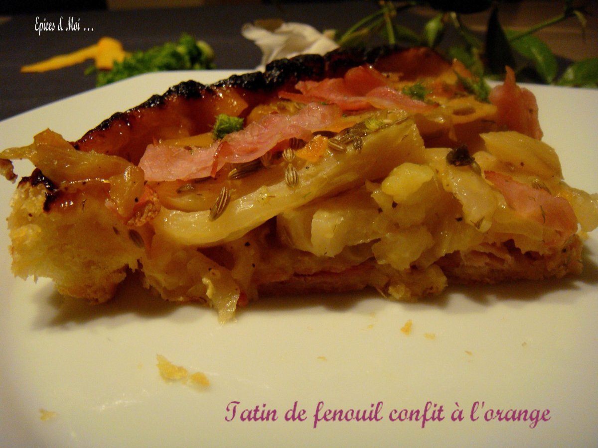 Tatin de fenouil confit à l'orange PrécédentSuivant Platmoyen1 h 20 m567 Kcal Envoyer cette recette à un ami Imprimer cette page Poser une question à l'auteur Publier votre photo de cette recette Ingrédients 4 1 rouleau de pâte feuilletée 4 bulbes de fenouil 3 oranges non traitées ( 2 oranges suffisent ) Le jus d'1/2 citron 30 g de beurre demi-sel 1 c. à s. d?huile 2 c. à s. de pastis ( facultatif ) 3 pincées de graines de fenouil 100 g de tranches de bacon Sel Poivre noir du moulin Coût estimé: 9.3Euros€ (2.33€/part)
