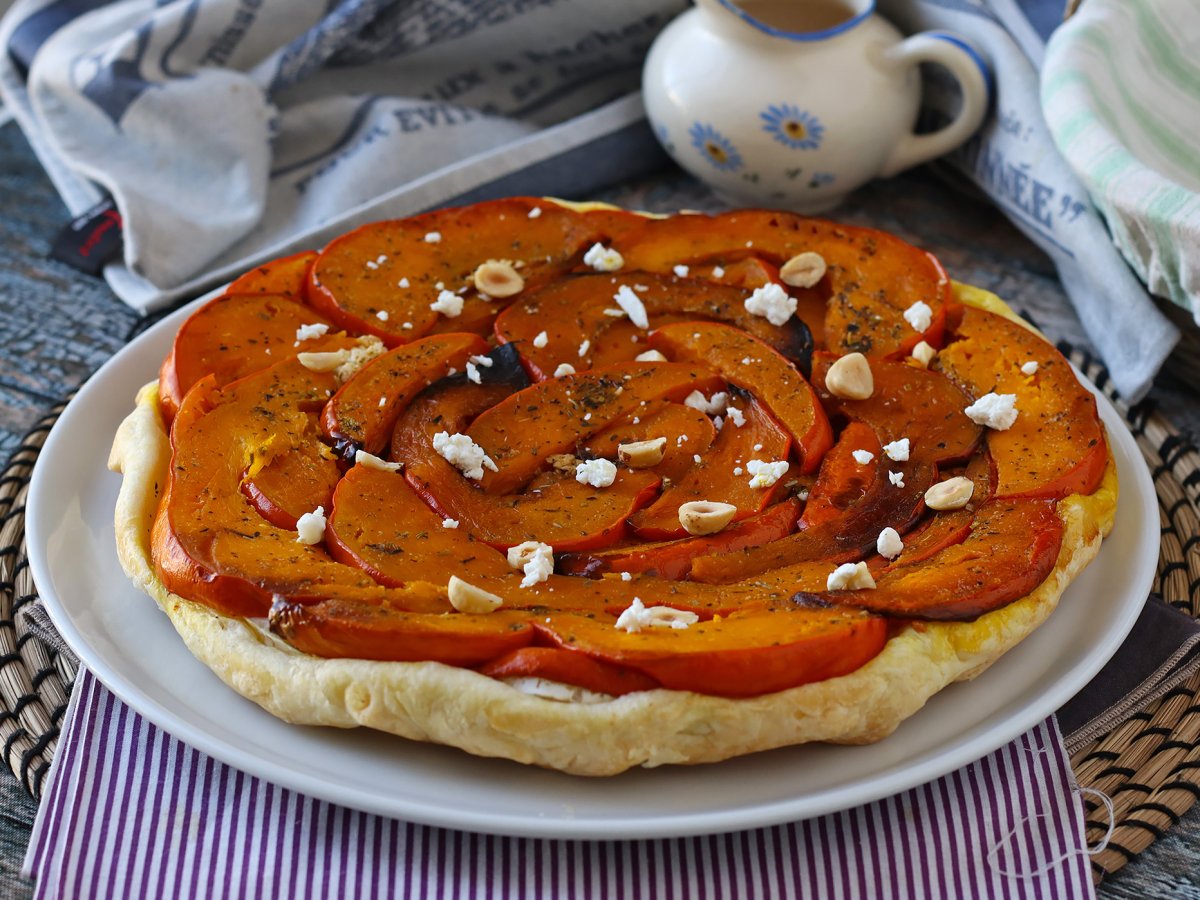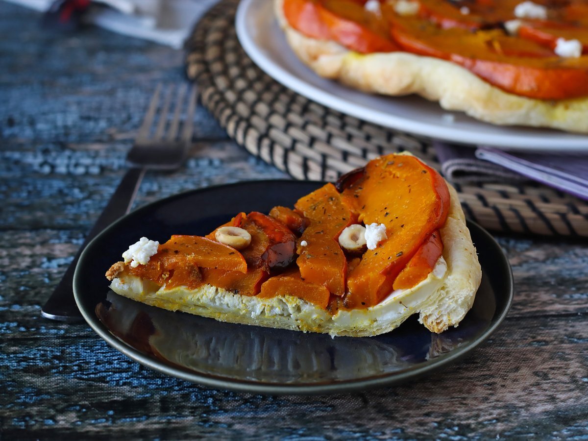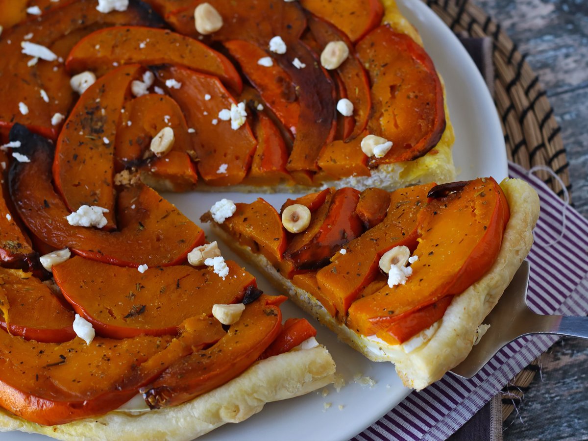 Laissez-vous tenter par cette tatin de potimarron au chèvre et au miel, un vrai délice automnal! Le potimarron fondant, le fromage de chèvre crémeux et la touche de miel sucré se marient parfaitement pour un résultat à la fois doux et savoureux. Cette tarte renversée est idéale pour un repas réconfortant accompagné d'une salade par exemple. Et avec quelques noisettes grillées pour le croquant, c’est le succès assuré! Simple à préparer et irrésistible dès la sortie du four, cette recette est parfaite pour savourer les parfums de saison :-)