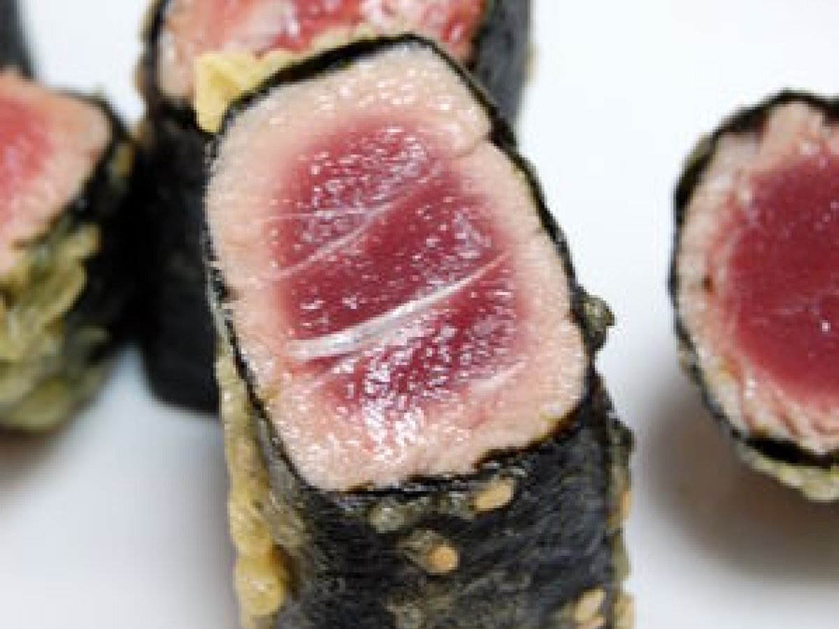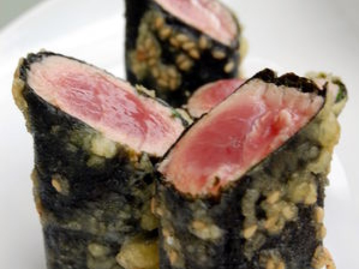 Tempura de thon mi-cuit façon alex votez maintenant PrécédentSuivant Platfacile35 min Envoyer cette recette à un ami Imprimer cette page Poser une question à l'auteur Publier votre photo de cette recette Ingrédients 4 400g de longe de thon rouge des feuilles de nori 1 cuillère à soupe de graines de sésame quelques feuilles de coriandre fraiche 1 oeuf 1 verre de farine huile pour la friture sauce soja pour l'accompagnement