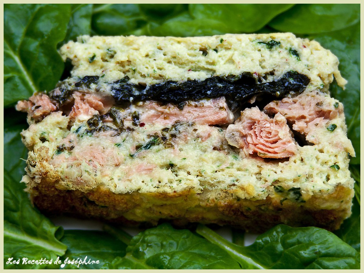Dans cette terrine de poisson, on retrouve une partie moelleuse constituée de cabillaud et de pousses d'épinard en alternance avec des tranches de saumon. Pour servir la terrine de poisson j'ai réalisé une sauce citron estragon