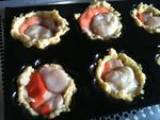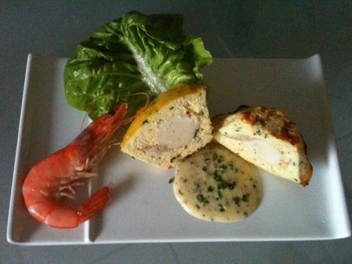 Terrines de poisson et saint jacques aux herbes PrécédentSuivant Platfacile40 min1389 Kcal Envoyer cette recette à un ami Imprimer cette page Poser une question à l'auteur Publier votre photo de cette recette Ingrédients 2 400 g de filets de merlan 2 oeufs 100 g de crème fraîche épaisse (10 cl) 3 cuillères à soupe d'herbes hachées (ciboulette) 120 gr de noix de St Jacques (6 petites ou 3 grosses) Sel Poivre Pour la sauce : 1 cuillère à café de moutarde à l'ancienne 200 gr de crème fraîche liquide (20 cl) Le jus d'1/2 citron 75 gr de beurre 1 cuillère à café de ciboulette ciselée Sel poivre Coût estimé: 11.68Euros€ (5.84€/part)