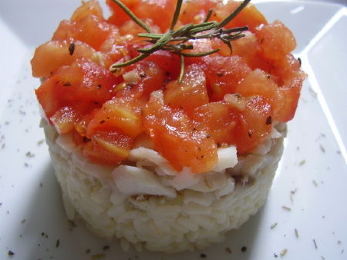 Timbale de riz et cabillaud. Platfacile25 min341 Kcal Envoyer cette recette à un ami Imprimer cette page Poser une question à l'auteur Publier votre photo de cette recette Ingrédients 2 8 cuillères à soupe de riz cuit 2 pavés de cabillaud 1 tomate 1 cuillère à café d'huile d'olive 1 cuillère à café d'herbes de Provence sel poivre Coût estimé: 4.06Euros€ (2.03€/part)