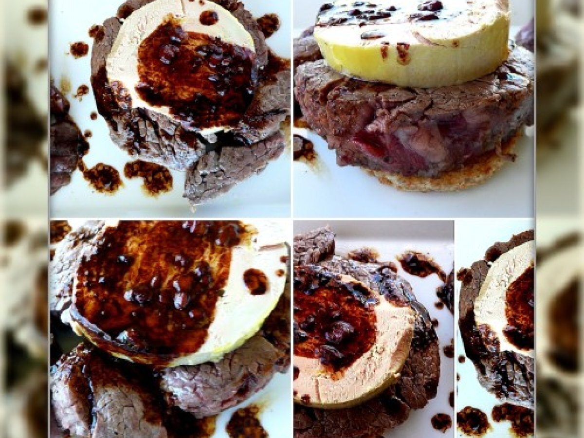 Tournedos rossini pour le réveillon de noël votez maintenant PrécédentSuivant Platfacile40 min Envoyer cette recette à un ami Imprimer cette page Poser une question à l'auteur Publier votre photo de cette recette Ingrédients 4 4 tournedos ou 4 pavés de rumsteak très tendres 4 médaillons de foie gras de 5 à 8 mm d'épaisseur 20 lamelles fines de truffes noires 3 dl de fond de veau un petit verre de Noilly ou de porto rouge 4 tranches de pain de mie découpées à l'emporte pièce (et sans la croûte SVP) 30 g de beurre pour la cuisson des tournedos - autant pour la cuisson du pain - autant pour la finition de la sauce