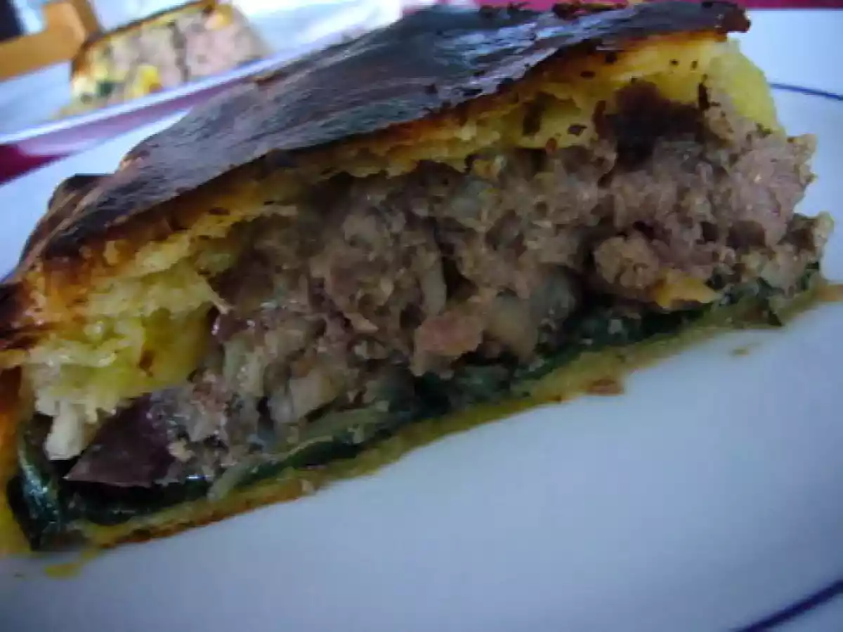 Tourte canard, champignons et blettes PrécédentSuivant Platfacile45 min Envoyer cette recette à un ami Imprimer cette page Poser une question à l'auteur Publier votre photo de cette recette Ingrédients 4 1 magret de canard 250 g de foies de canard ou de volaille 1 belle échalote 250 g de champignons de Paris 2 ou 3 belles feuilles de blettes 2 cuillères à soupe de mousse de foie de volaille 2 disques de pâte feuilletée 5 cL de porto 5 cL de cognac 1 morceau de baguette environ 10 cm 1 oeuf beurre