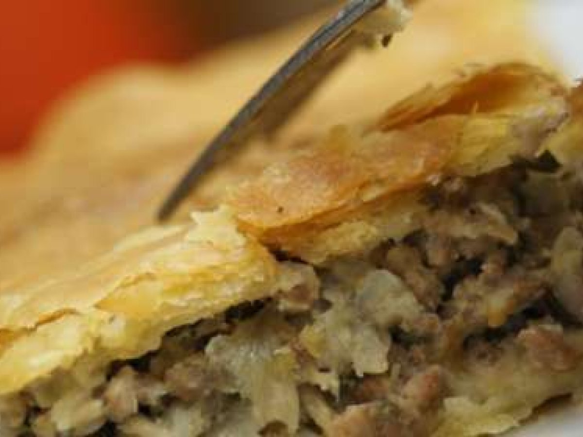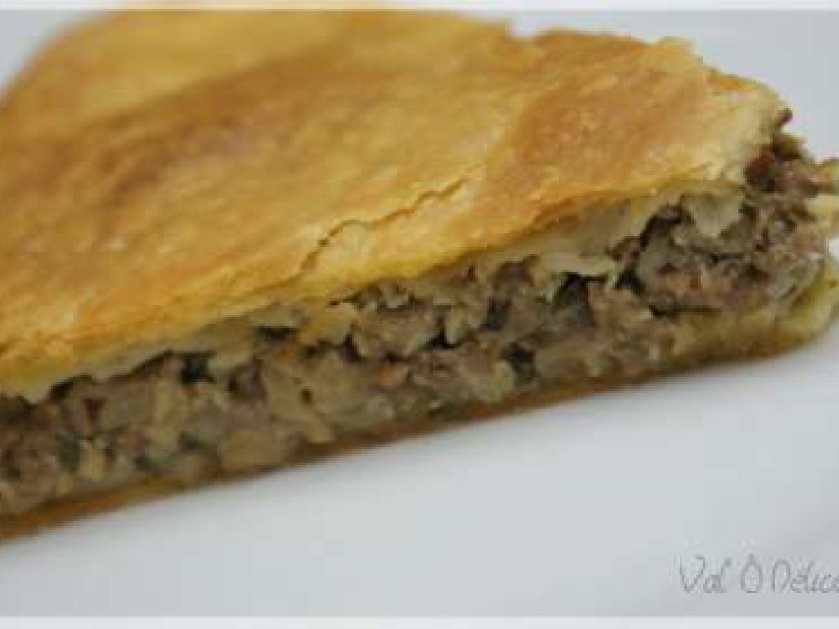 Tourte feuilletée à la viande PrécédentSuivant Platmoyen1 h 15 m Envoyer cette recette à un ami Imprimer cette page Poser une question à l'auteur Publier votre photo de cette recette Ingrédients 6 400 g de pâte feuilletée (ou 2 rouleaux) 500 g de boeuf haché 250 g de champignons 12 échalotes 1 bouquet de persil 2 oeufs + 1 jaune pour dorer 1 gousse d'ail 1 noix de beurre 2 càs d'huile Sel, poivre