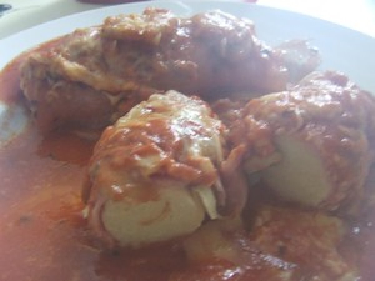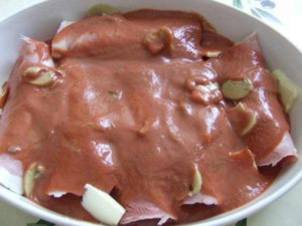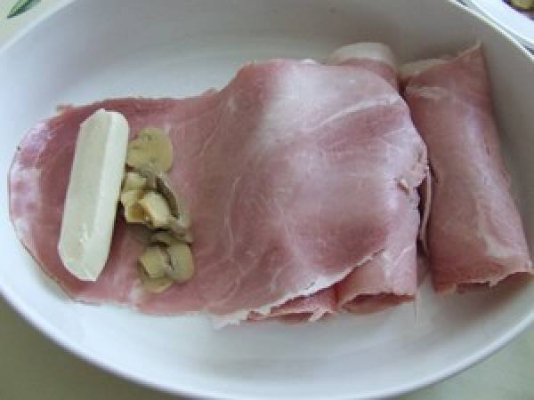 Tranches de jambon au four au champignons et quenelles