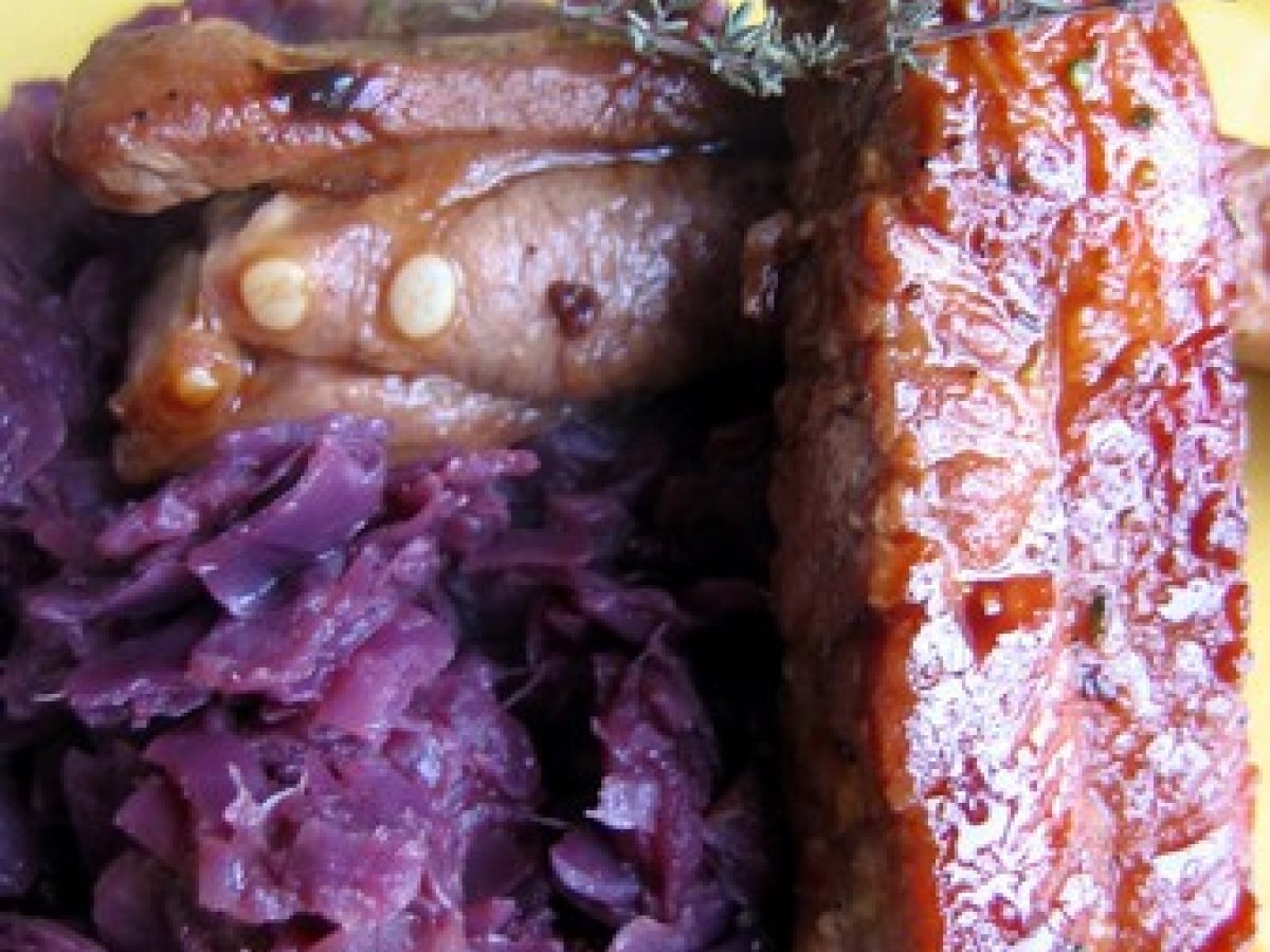 Travers de porc et sa compote de chou rouge aux pommes