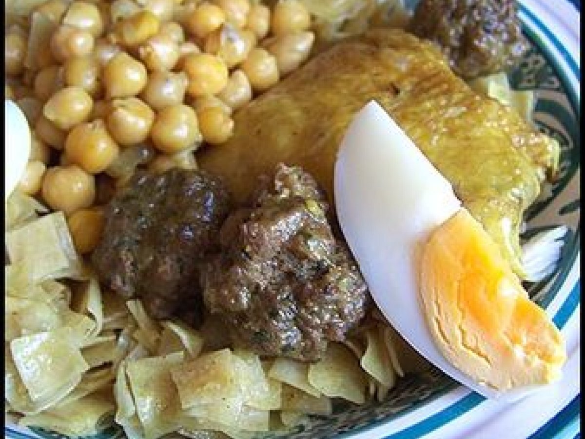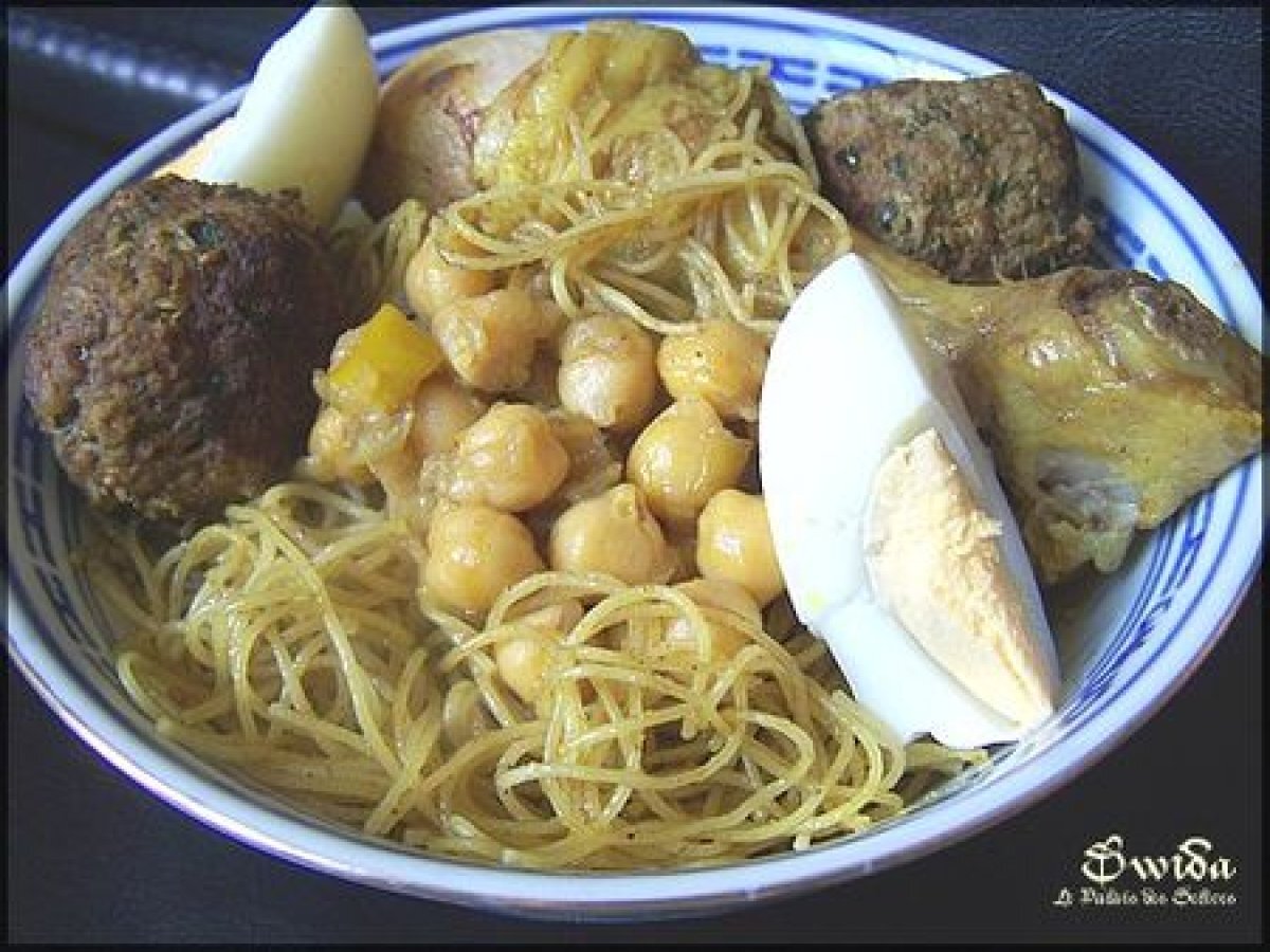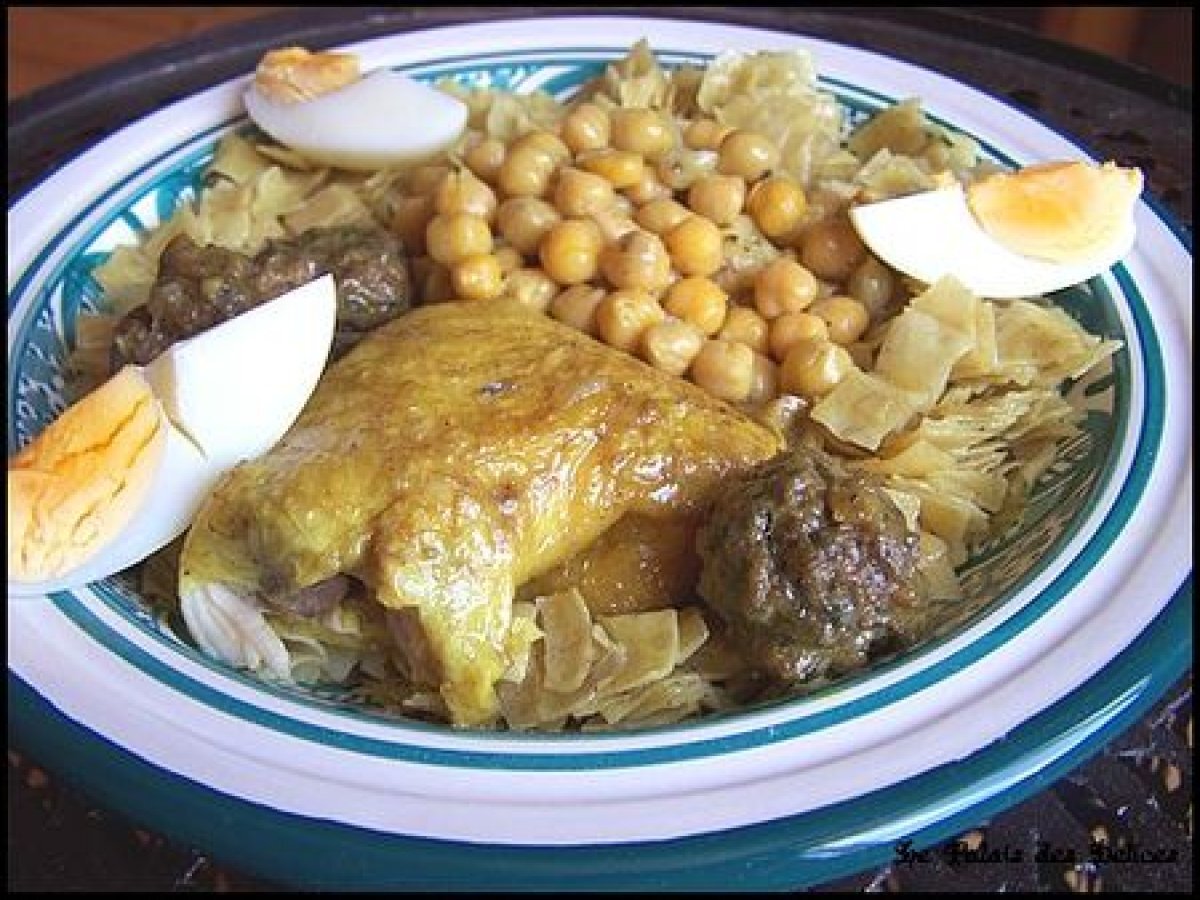 Trida ou mkarfta, pâtes algériennes à la viande et pois chiches