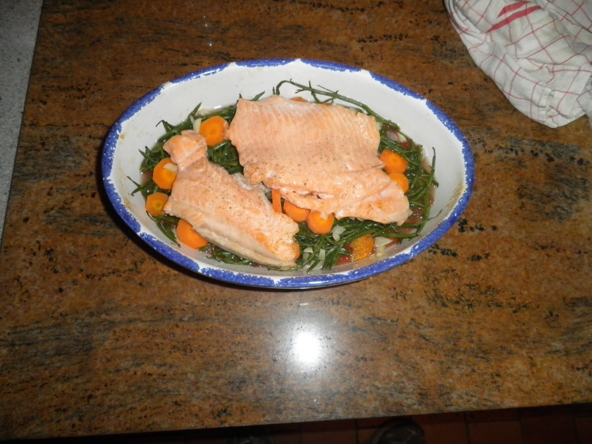 FILET DE TRUITE ARC EN CIEL SUR LIT DE SALICORNE
