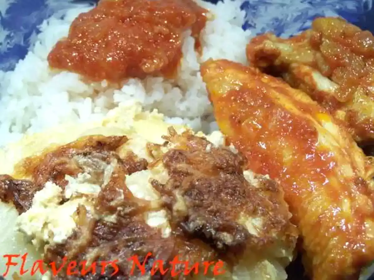 Un plat complet votez maintenant Platfacile1 h 30 m Envoyer cette recette à un ami Imprimer cette page Poser une question à l'auteur Publier votre photo de cette recette Ingrédients 6 Cari poulet: 1 poulet entier 4 tomates 3 oignons 2 à 3 gousses d'ail 1 pincée de pistil de safran 1 branche de thym 1 à 2 feuilles de laurier sel, poivre en grain huile Gratin de navets: 6 navets 1 verre de crème d'avoine liquide 1 verre de lait d'épeautre 1 oeuf 1 poignée de comté râpé sel, poivre