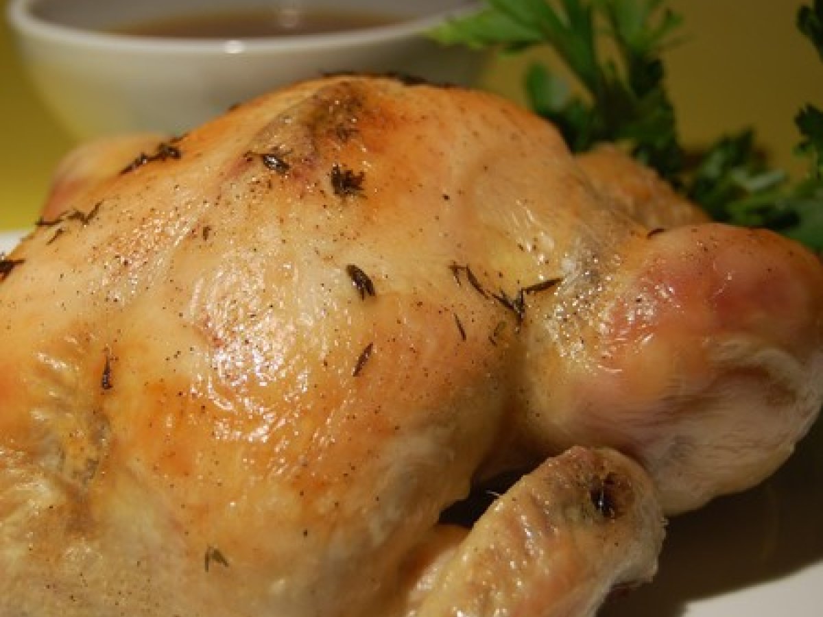 Un vrai bon poulet rôti et sa sauce au vin blanc
