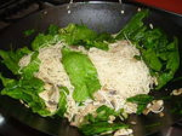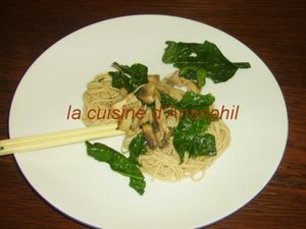 Un wok du jardin en ce dimanche midi au poulet , épinards, nouilles somen votez maintenant Platfacile20 min Envoyer cette recette à un ami Imprimer cette page Poser une question à l'auteur Publier votre photo de cette recette Ingrédients 5 un reste de poulet plusieurs poignées de jeunes pousses d'épinards de la ciboulette fraichement cueillie 1 oignon 1 cuillère à soupe d'huile de sésame 300 g de nouilles somen quelques cuillères à café de sauce soja douce et kikkoman 5 champignons de Paris découverts au fond du frigo