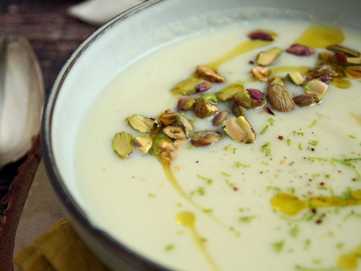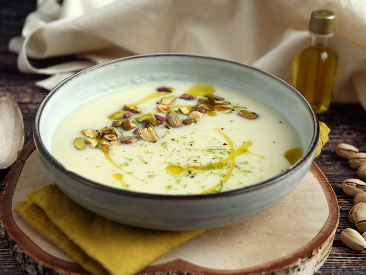 Vous vous demandez souvent que faire de votre chou-fleur ? Transformez-le en velouté ! Une bonne manière de faire découvrir et aimer ce légume à toute la famille :-) Pour une touche de croquant, pensez à disposer des pistaches concassées sur le dessus avant de servir et le tour sera joué.