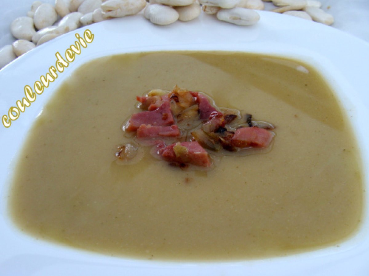 Velouté de haricots blancs Platmoyen1 h 50 m284 Kcal Envoyer cette recette à un ami Imprimer cette page Poser une question à l'auteur Publier votre photo de cette recette Ingrédients 4 230 g de haricots blancs lingots réhydratés 2 oignons 2 gousses d’ail 1 branche de cèleri 1 feuille de laurier 4 tiges de persil 3 cuillères à soupe d’huile d’olive 1 cuillère à soupe de jus de citron 1,2 litre de bouillon de légumes 60 g de pancetta 3 échalottes 85 g de Fontina en petits dés Coût estimé: 4.24Euros€ (1.06€/part)