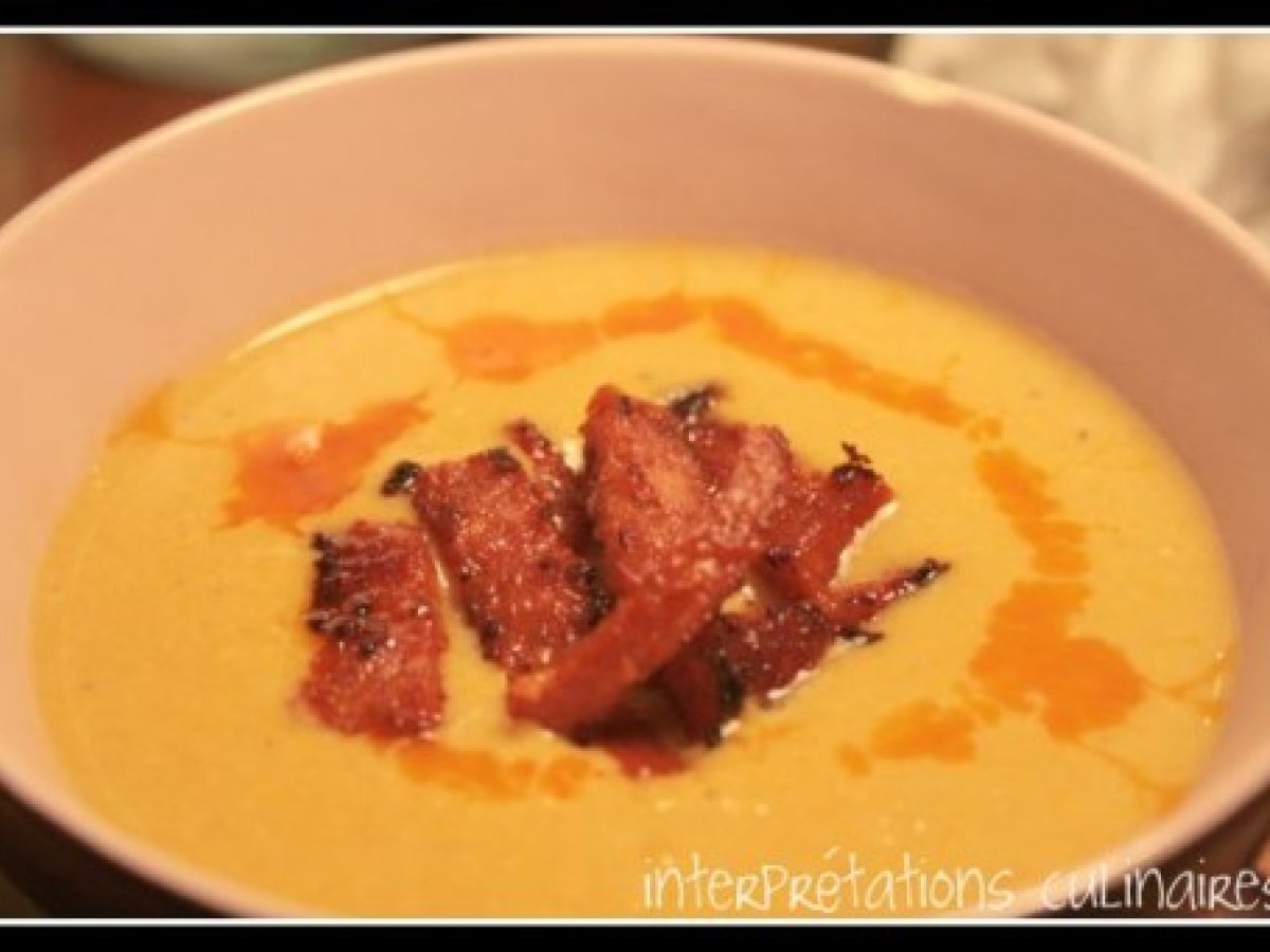 Velouté maïs & patate douce votez maintenant Platfacile37 min1635 Kcal Envoyer cette recette à un ami Imprimer cette page Poser une question à l'auteur Publier votre photo de cette recette Ingrédients 4 1 oignons émincé 1 petite patate douce (pelée et coupée en dés) 1/2 litre de lait écrémé 1 boite de maïs (350 g environ) 5 cm de chorizo coupé en bâtonnets (pour la déco)