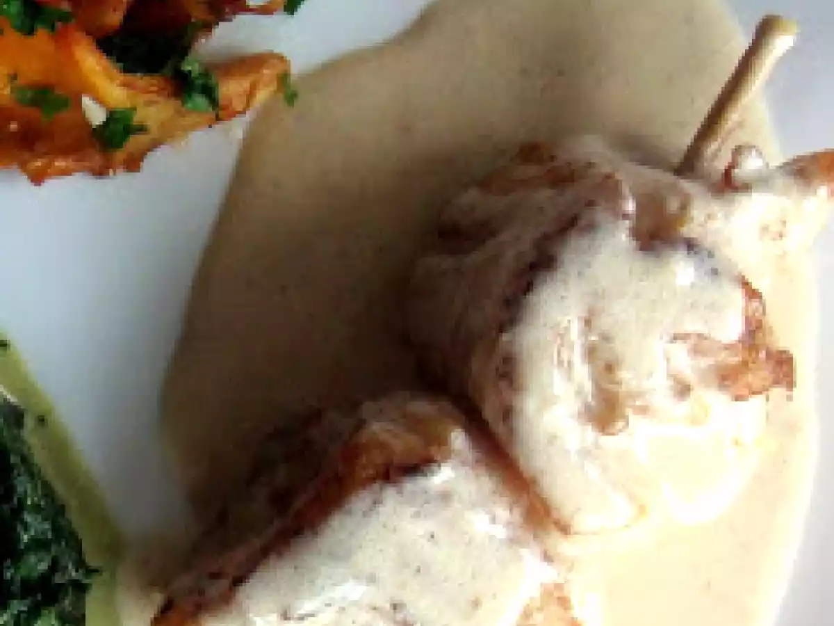 - Pendant ce temps dans la deuxième poêle, mettre les épinards hachés, les couvrir de quelques cuillères de crème, saler, poivrer, un peu de piment de cayenne, laisser réchauffer tout doucement.