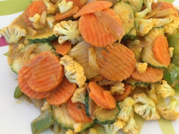 Wok de lêgumes croquants au curry rouge