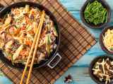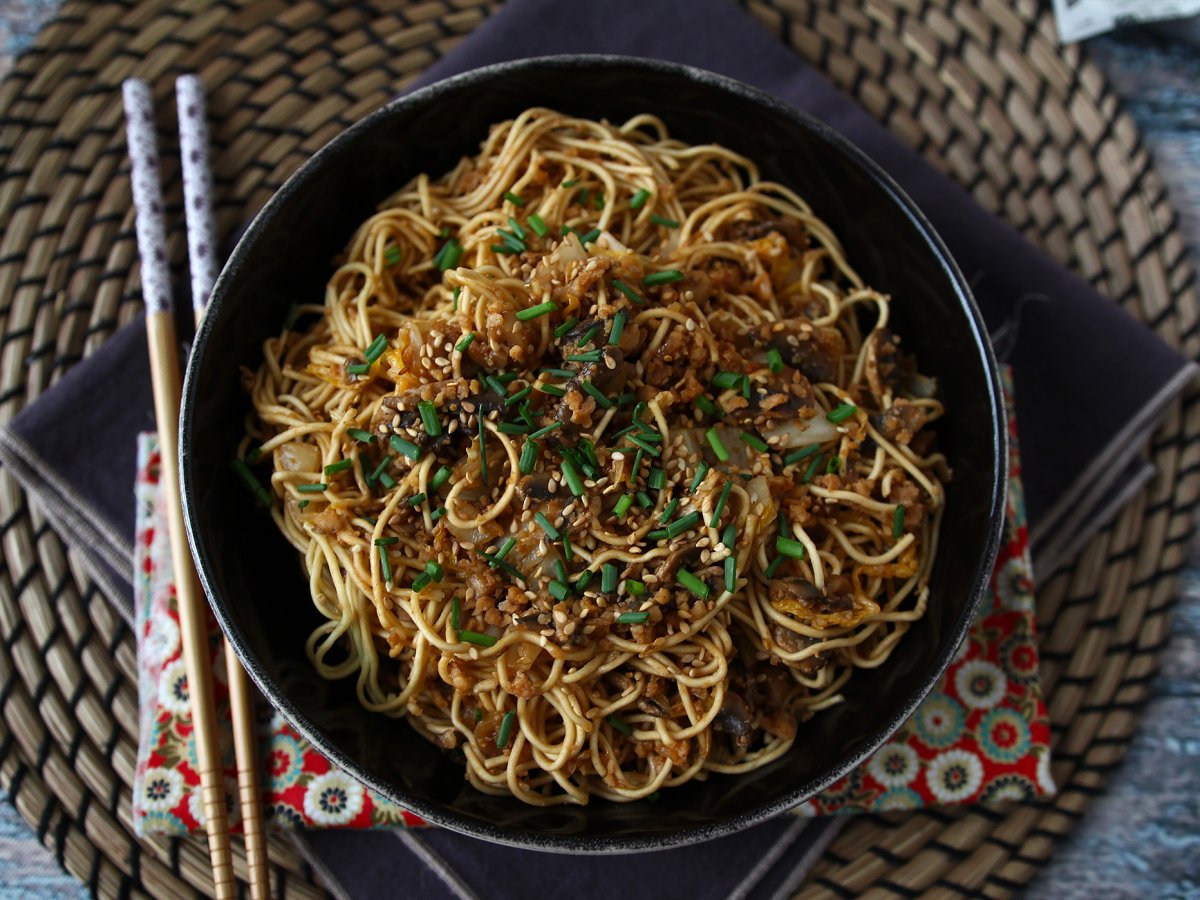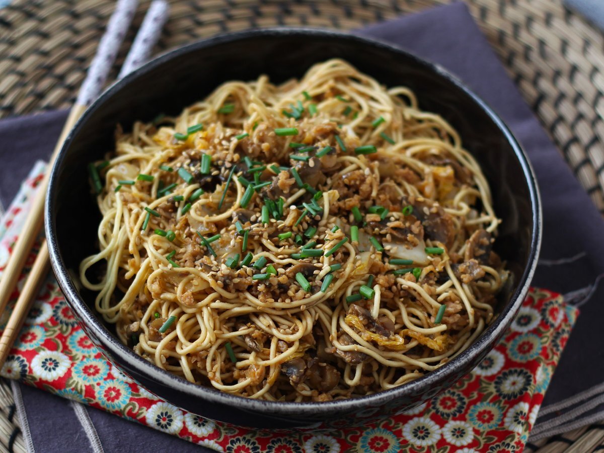 Pour un plat facile à faire et riche en saveurs, tentez le wok de nouilles chinoises ! Ici, vous pourrez goûter à une garniture végétarienne réalisée avec des petits légumes et des protéines de soja texturées. Et si vous ne n'avez jamais goûté à cet ingrédient, voici une bonne raison d'être curieux et de tenter cette préparation ;-)