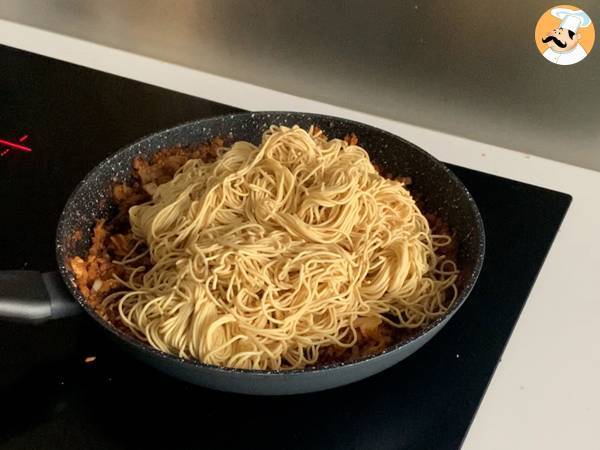 Wok de nouilles chinoises (légumes et protéines de soja texturées)