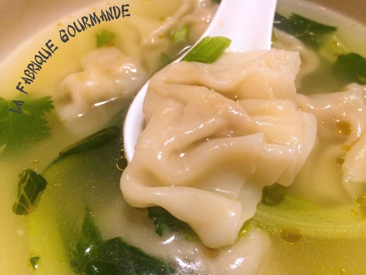 Voici la "wonton soup " ou si vous préférez la soupe aux raviolis chinois,une soupe réconfortante que servent tous les restaurants chinois ;un vrai delice très facile à faire à la maison !