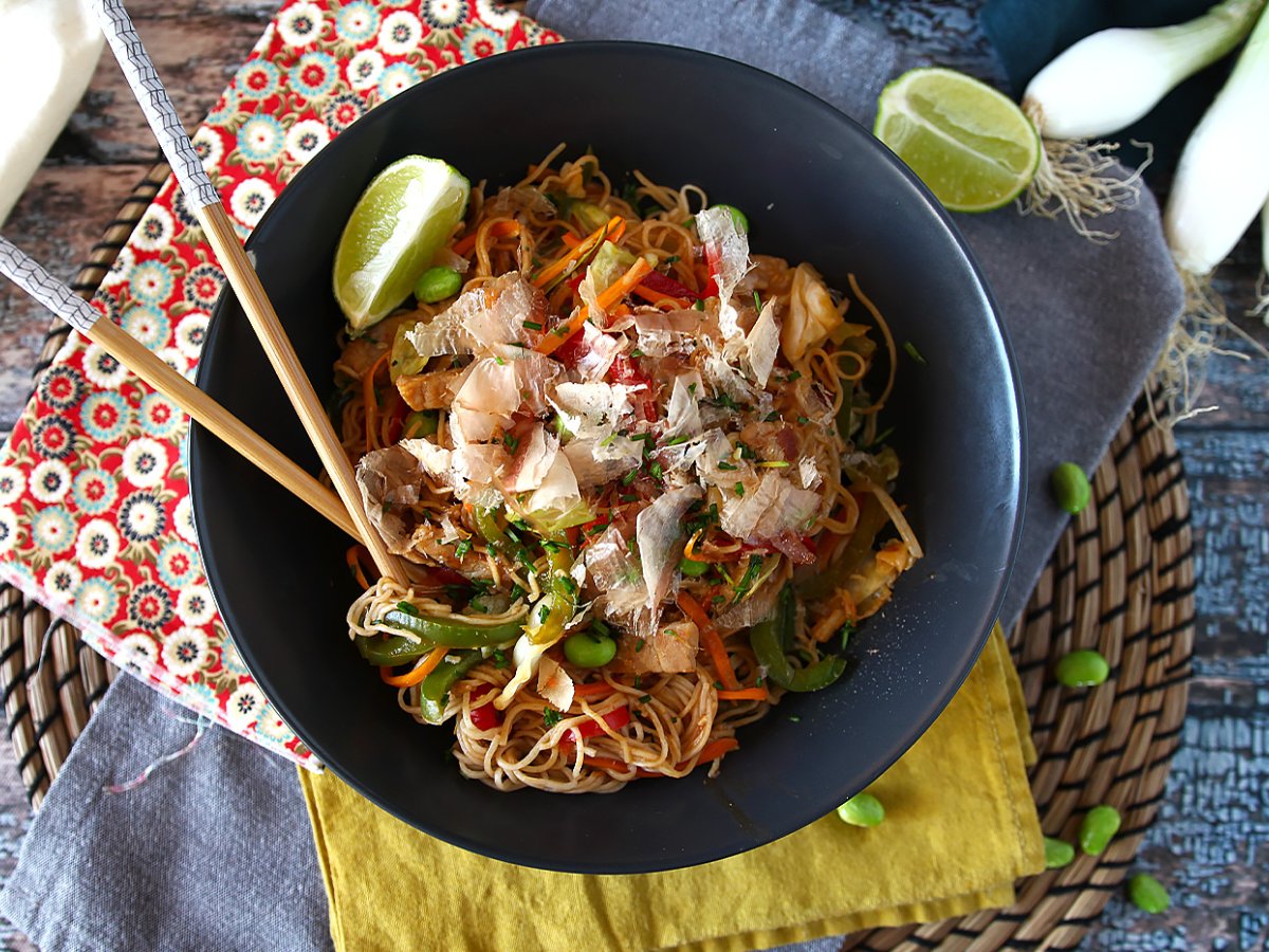 Vous pourrez également remplacer les nouilles soba par des nouilles udon qui sont plus épaisses, vous réaliserez donc un Yakiudon.